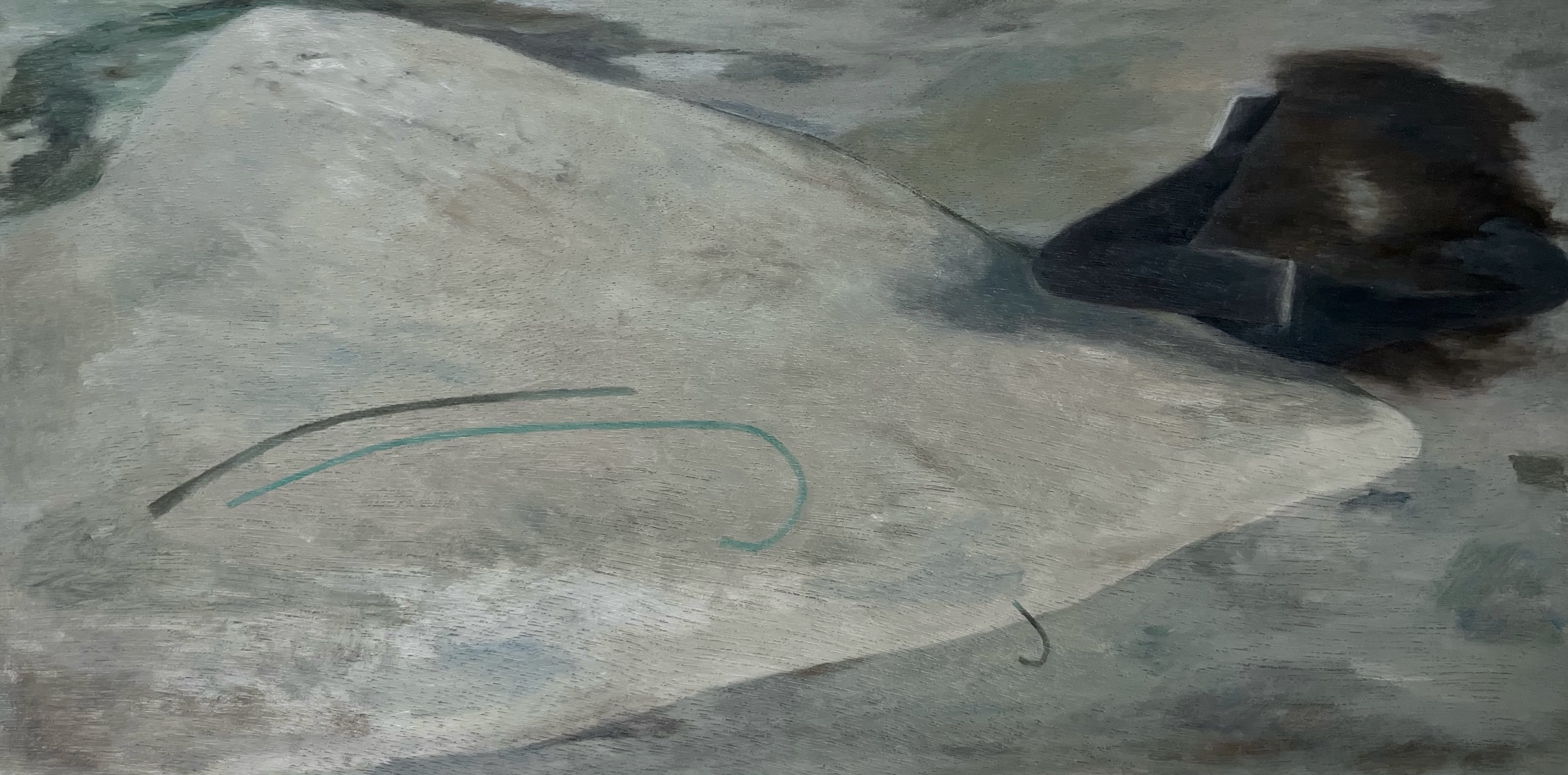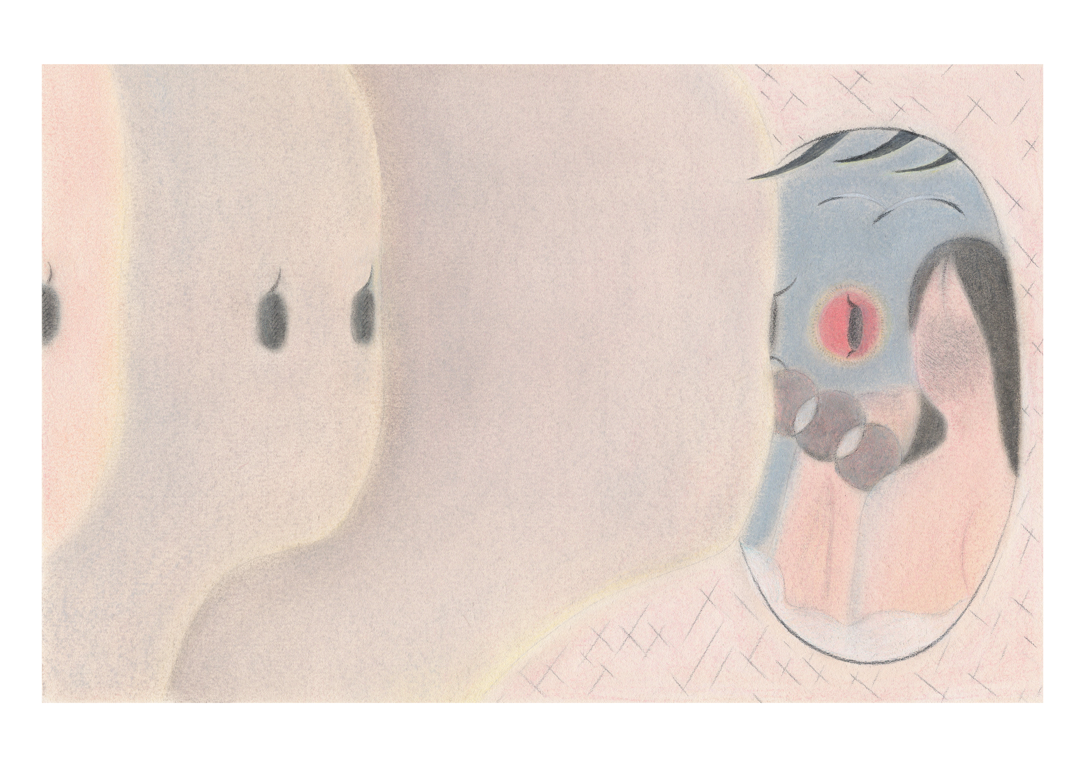“一会儿天堂一会儿地狱,全靠想象力。梦、现实,模糊的意象在日复一日的平淡生活里反复重现,绘画或是将对存在和语言感到的陌生转向空白的画面,试着重建‘我’与真实之间的链接。绘画不是我唯一的创作方式,但是是最重要的。在细枝末节里抛出的锚点,会因其微小而连续成为一条可探究的轨迹,这让我感觉情绪真实的发生过。”